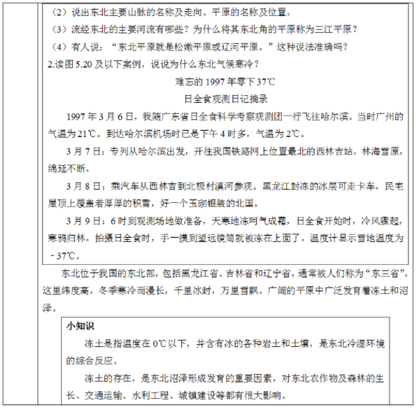 【学生回答】东北地区纬度高,位于我国最北部,冬季寒冷。