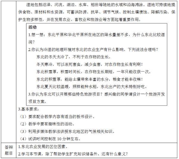 【特岗面试试讲】地理试讲稿——冷湿的自然环境