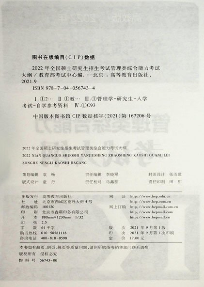 2022年全国硕士研究生招生考试管理类综合能力考试大纲